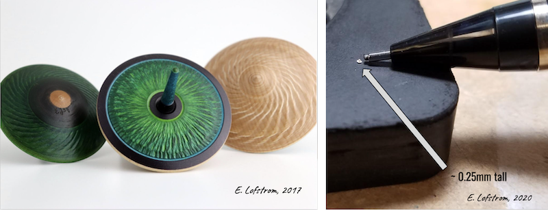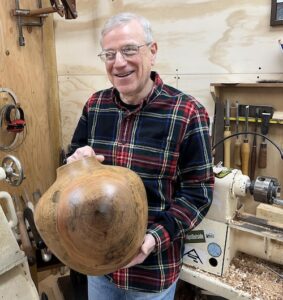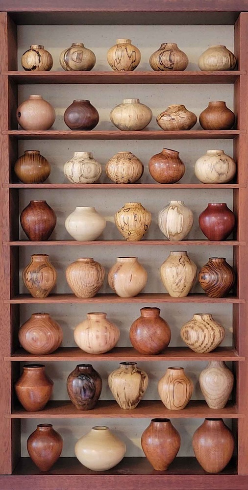 My primary interest is creating large vessels and bowls from green wood, focusing on perfection in form and excellence in execution. Any added ornamentation is subtle. I also routinely turn boxes and an assortment of small spindle items, including more than 12,000 spin tops. I like to demonstrate miniatures because they offer a fun and fast learning experience, and are easily accessible to beginners with mini lathes. Additionally, repeated practice of miniature items will elevate the skill of any woodturner.
