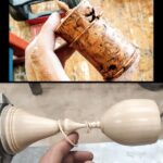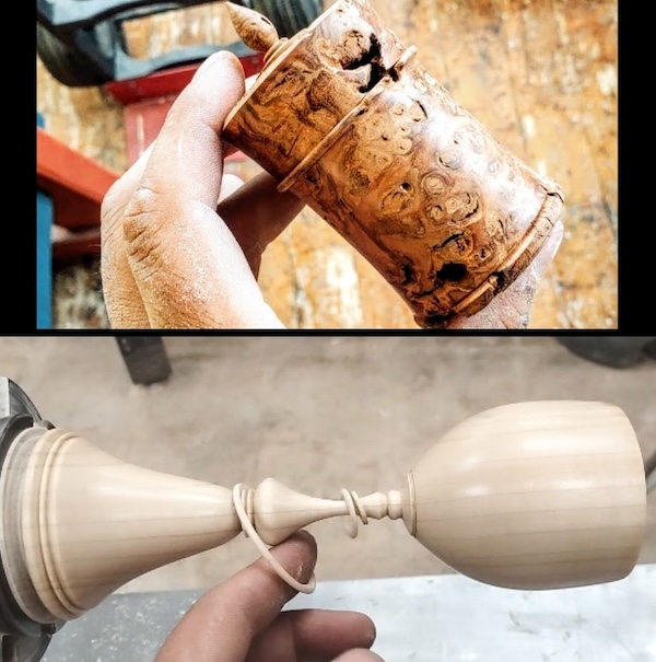 The technique is gluing up a vase blank rather than turning it from a solid block of wood. This approach removes the need to hollow. A glass tube insert allows you to use the vase with water.